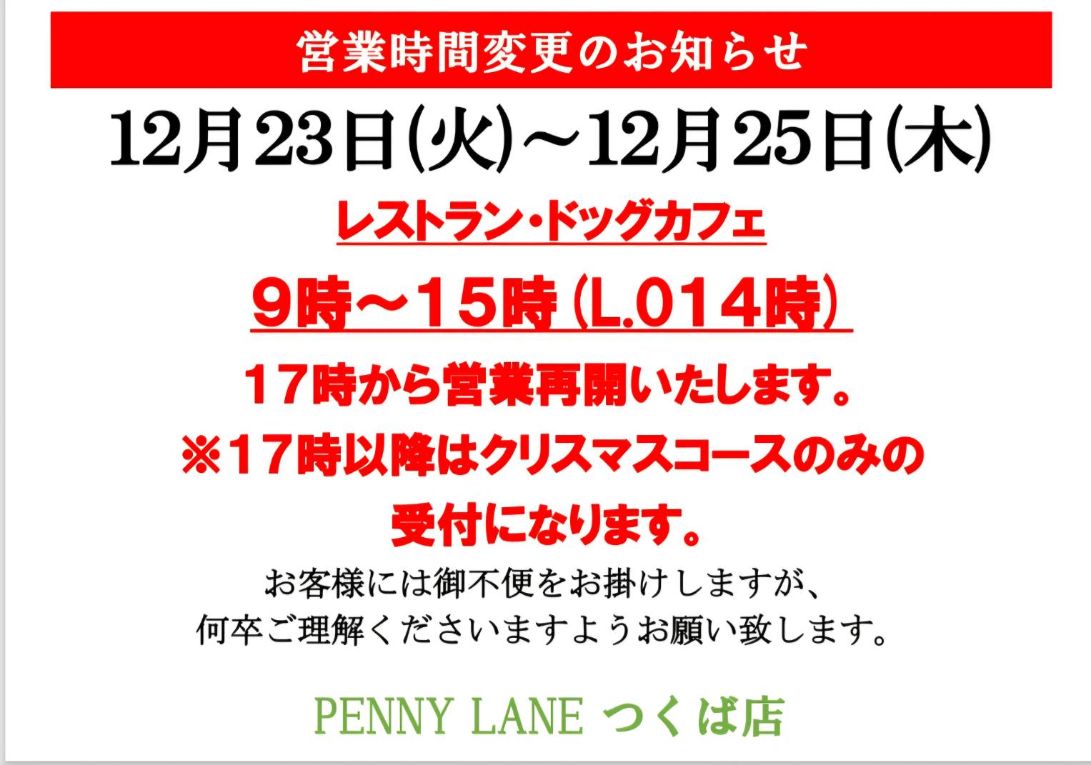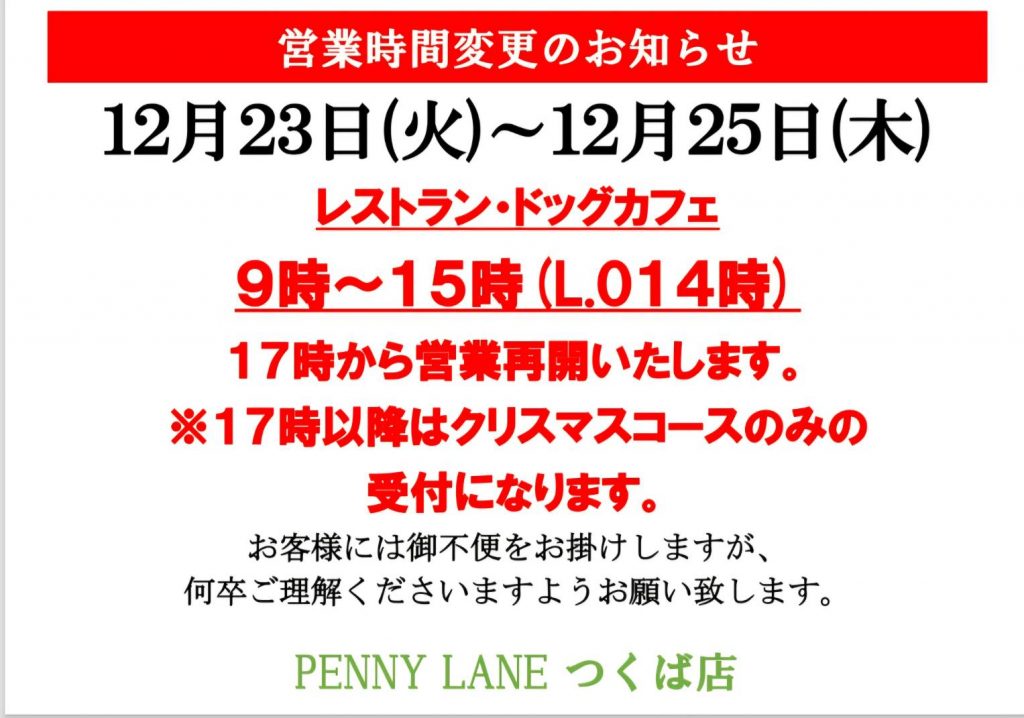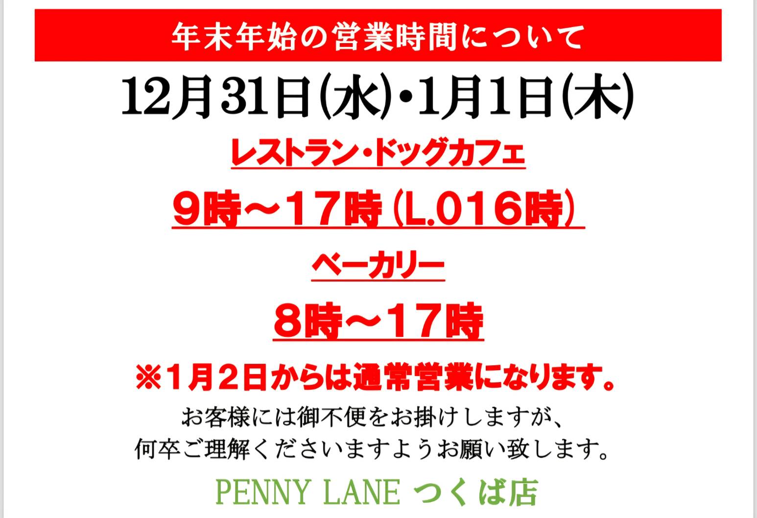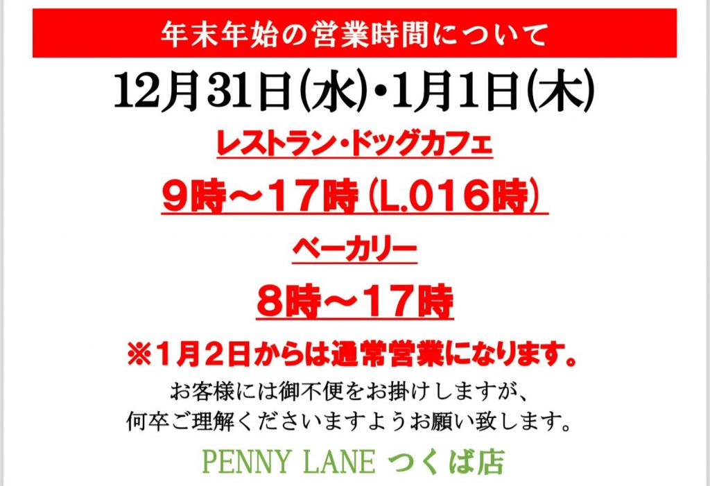 年末年始は下記の通り営業時間を変更し営業させていただきます。