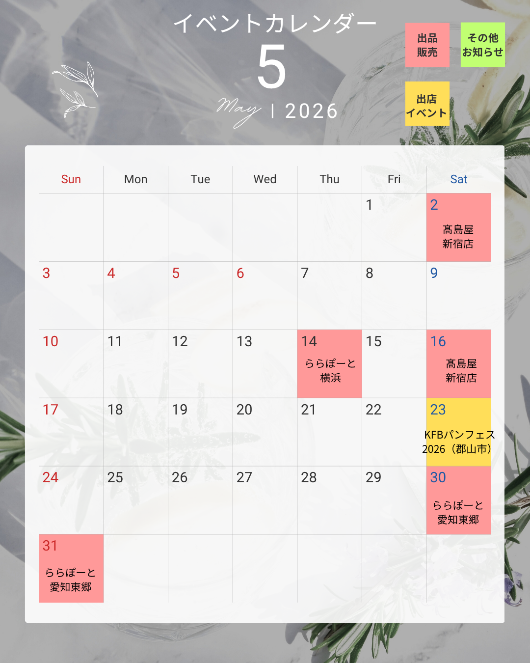 下記日程はベーカリー、レストラン共に休業とさせていただきます。